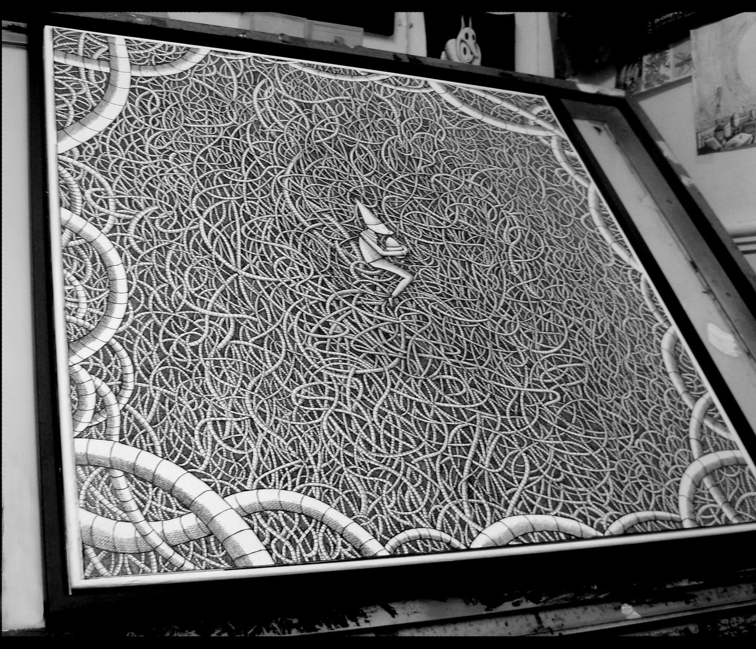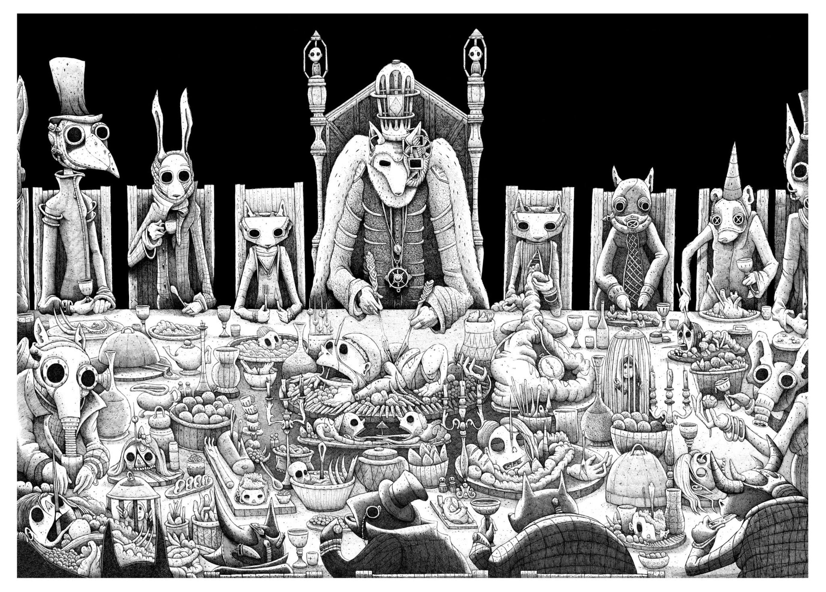 Mr Mead is the working name of Tom Mead - an artist, illustrator and muralist based on the Gower Peninsula in Wales, surrounded by beaches, forests and a suspicious number of strange ideas. Working primarily in pen and ink, his work has been shown at the Royal West of England Academy, the V&A, the Natural History Museum, and in galleries across the UK, Europe, America and Australia. Commissions include Aardman, Workman Publishing New York, the British Council and Crack Magazine. Murals have gone up in Bristol, London, Cape Town and Stöðvarfjörður in East Iceland — the last one reached via a van, a best friend and a fish factory. He also co-created Silt - an underwater horror game with nearly two million mobile downloads and still selling across PC and console. It ended up on the cover of Wireframe Magazine. That’s a different story, told at Jarkman Studio. Available for illustration commissions, murals and fine art. Get in touch.